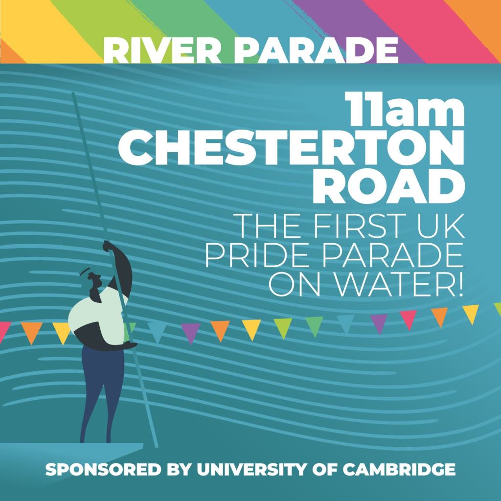 June 2019 – Co-organised the River Parade at Cambridge Pride 2019, and secured funding and sponsor by University of Cambridge. Spectators got the best view of the vibrant flotilla of punts from the river bank on Chesterton Road at the Jesus Green weir (near Carlyle Rd). Each punt carried members of local LGBT+ community, celebrating the county’s diversity, and was decorated in a colour from the pride flag.