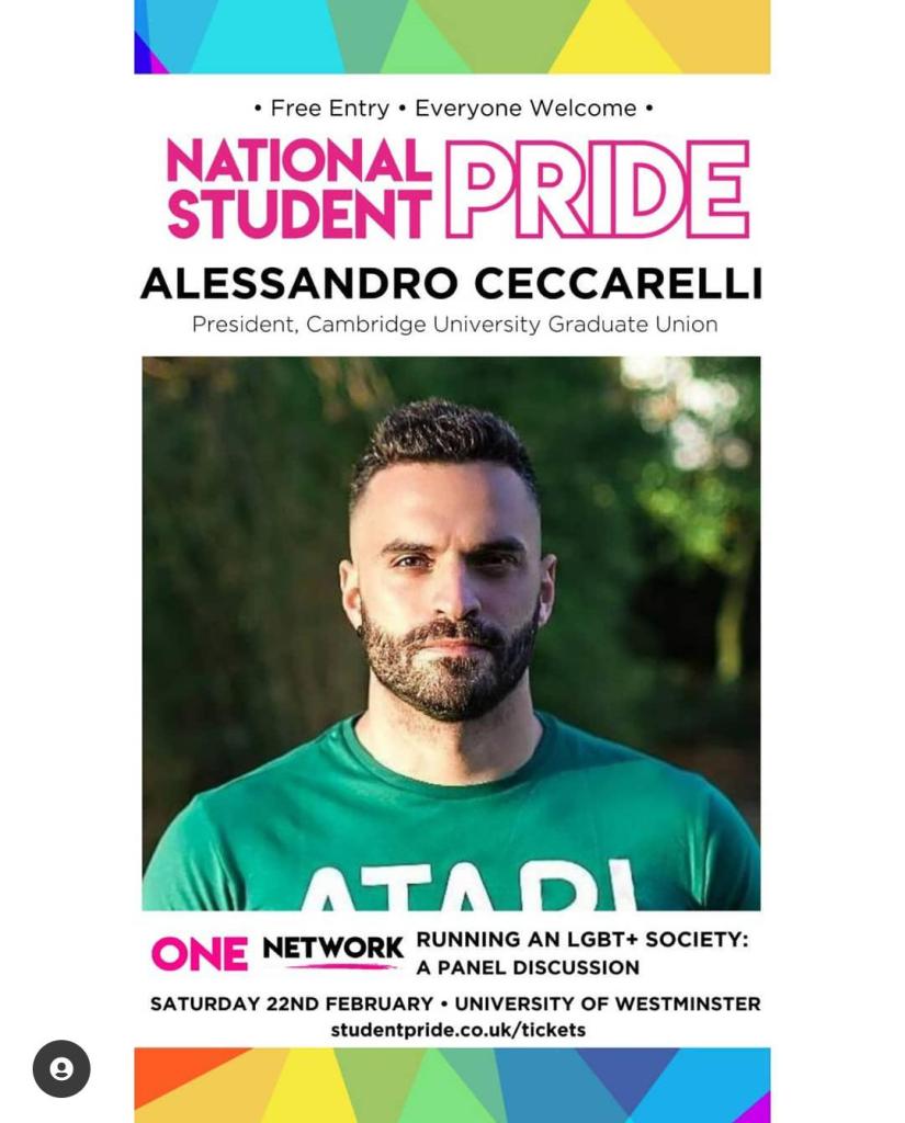 February 2020 – Speaker at National Student Pride 2020 on ‘One Network: Running an LGBT+ Society’.